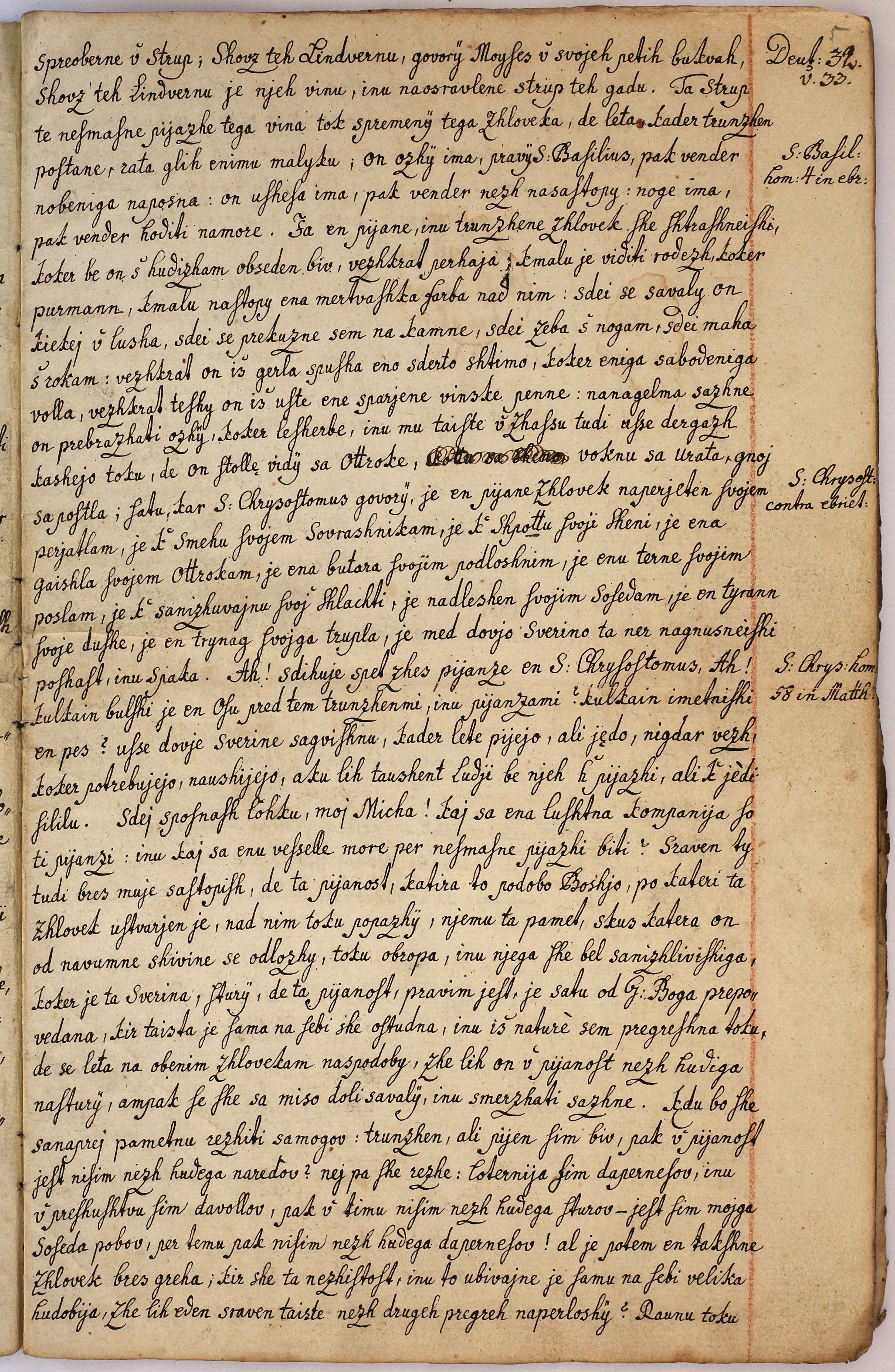 Na 14 listih formata folio je v dramatizirani obliki z dialogi predstavljen pogovor župnika s štirimi farani, ki jih želi župnik odvrniti od prekomernega pitja. Replike faranov so ljudske, odrezave, polne slikovitega besedja; župnikov govor je umirjen, razumen, njegovi ugovori proti pitju povzemajo mnoga mesta iz Svetega pisma in številne misli cerkvenih očetov. Župnikovo nasprotovanje pitju ni le osebno, opira se na tradicijo. Jezik dialogov je večidel čist, knjižen, pravopis zelo dosleden. Avtor se je podpisal in besedilo datiral na naslovnem listu: Isthaec Conſcriptio clamat ad Dominum ſuum Sylveſtrum Mure Curatum in Kollobrat 17 CMB 91.