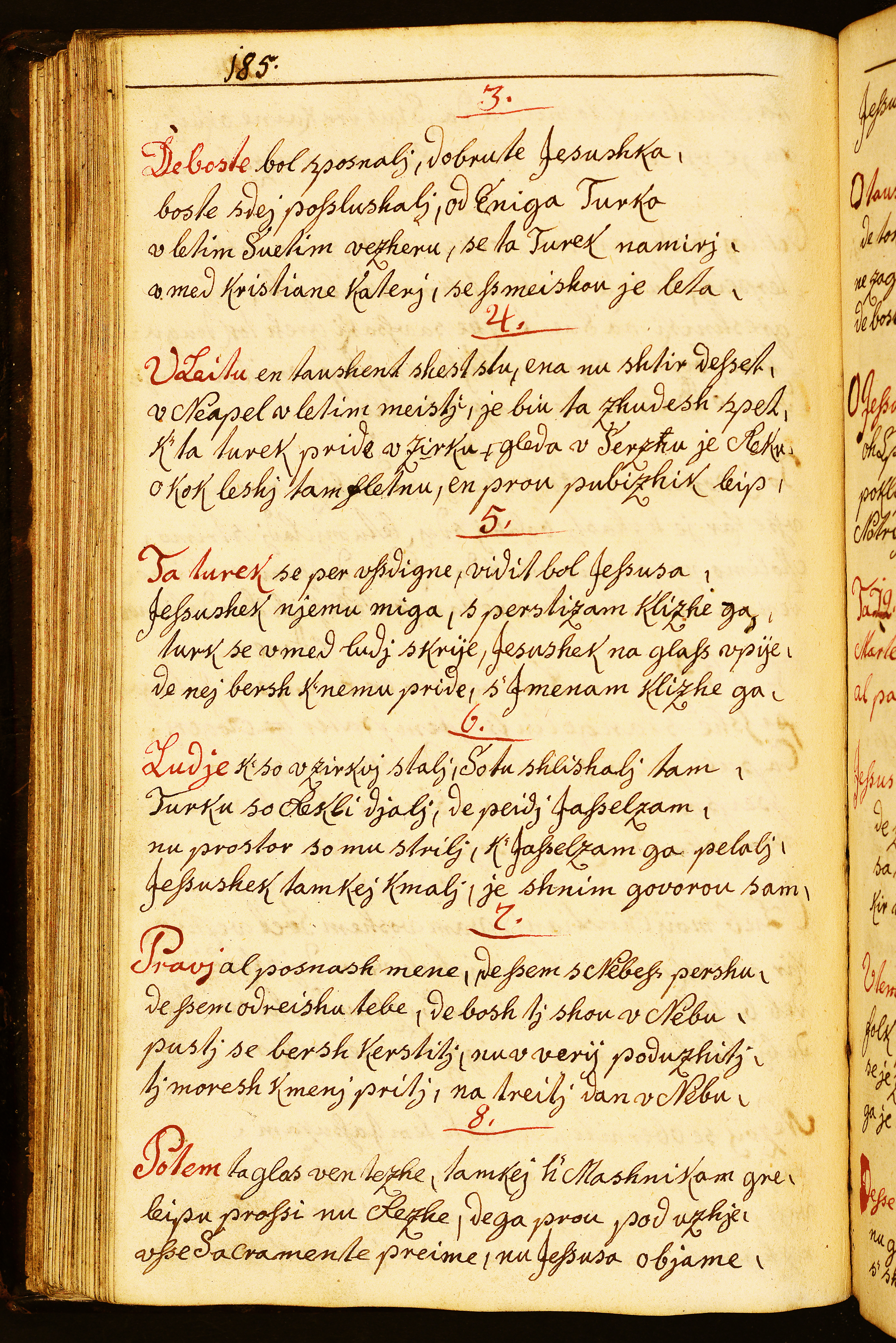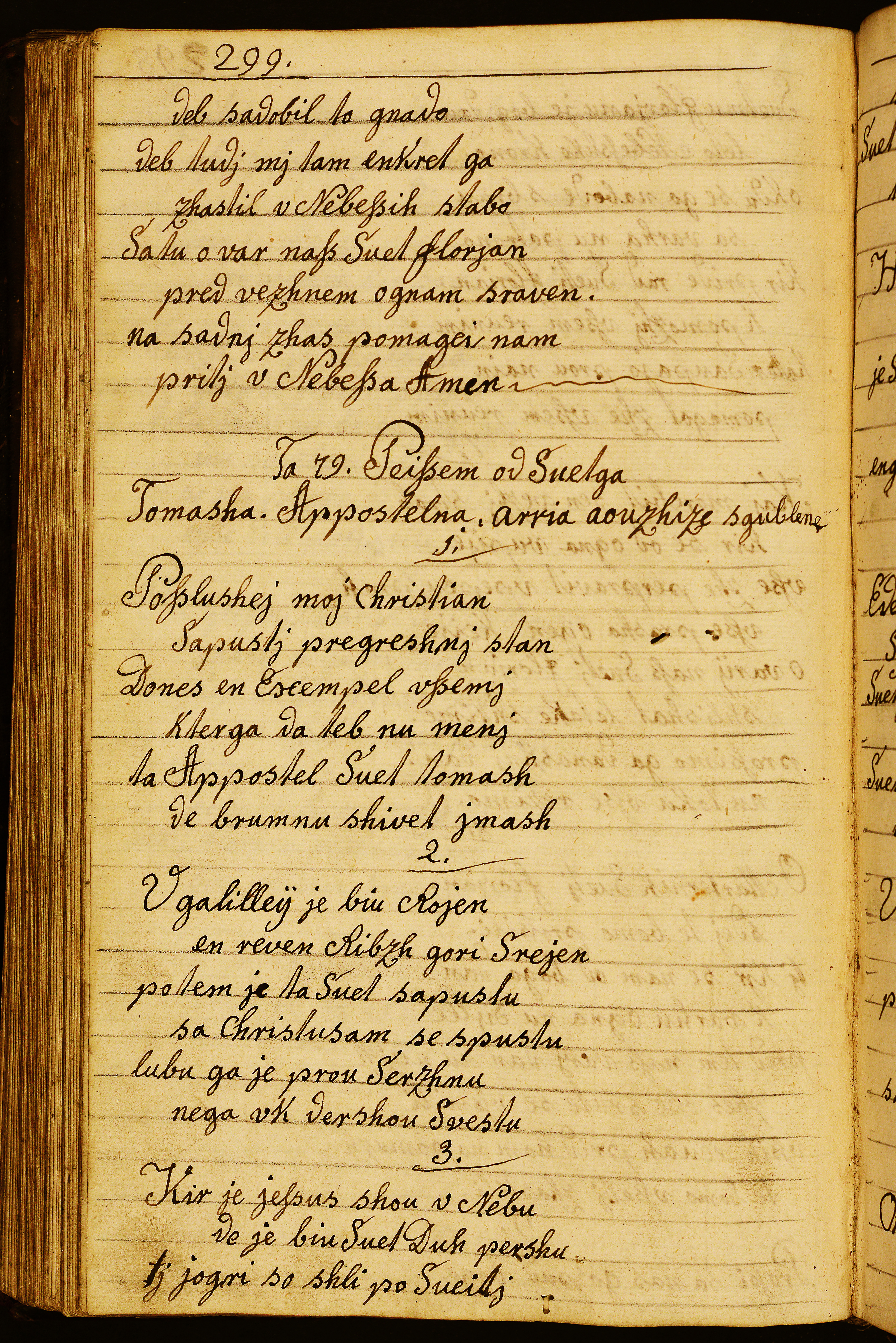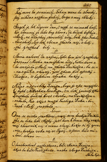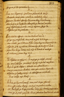 papir || Močan svetlejši papir, razmik žic dosledno 28 mm, dva vodna znaka: || monogram A. D. v velikosti 18 x 58 mm na pag. 336–337 || in || zvezda s sedmimi kraki, ki izhajajo iz kolesa, vsak od sedmih krakov ima na konici še peterokrako zvezdico; razločno, velikost 78 x 78 mm na pag. 338–339 idr. || Rokopis obsega 163 listov v formalu folianta; popisani so do pag. 324; od strani 325 naprej je rokopis nepopisan, več listov manjka. || 310 || 193 || Paginirala glavna roka, brez napake od pag. 2 do 281, nato en folij odtrgan, vidni so še popisani ostanki lista v pregibu, paginacija naprej od pag. 284 nepretrgano do 331, manjkata dva lista, nato 336–349, manjka en list, nato 352–355, manjkajo listi do lista 362–363, nato spet manjkajo do lista 368–369. || Poleg glavne roke, ki je manj okretna – t.j. verjetno Anton Kadunc – je pisala še ena, pisno bolj uglajena roka, vendar je v njenih besedilih več pisnih napak in nedoslednosti kakor v Kadunčevi, kjer napak skoraj ni. || Naslovi pesmi in prva beseda vsake kitice so napisani z rdečilom. || Rokopis je vezan v platnice iz lesenih deščic, prevlečene s temnorjavim usnjem. Kodeks je imel zapirača, ki sta odtrgana, žebljiča sta še na mestu. Platnice pripadajo neki starejši vezavi, na čelni platnici je še viden ostanek napisa z letnico 1734.
