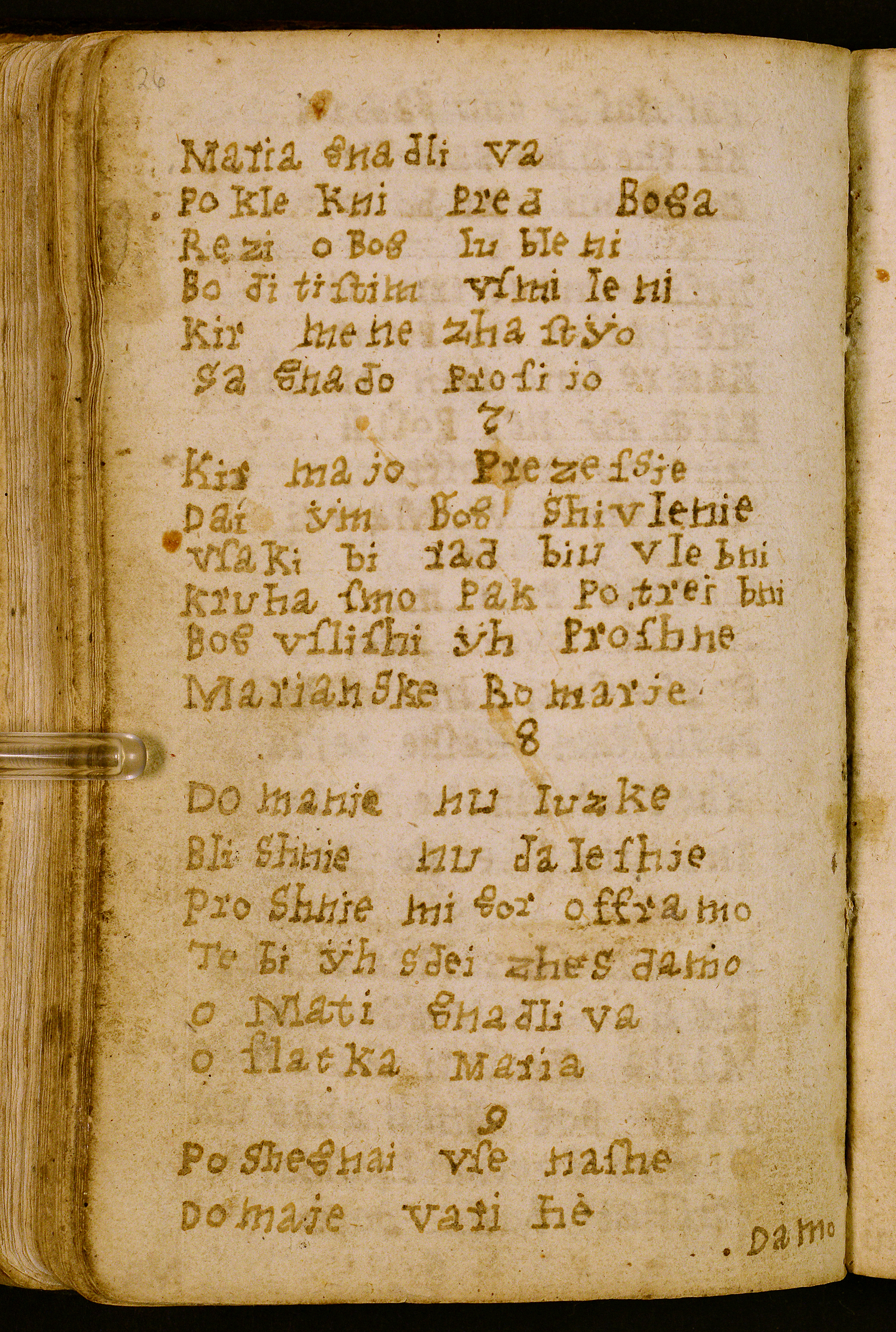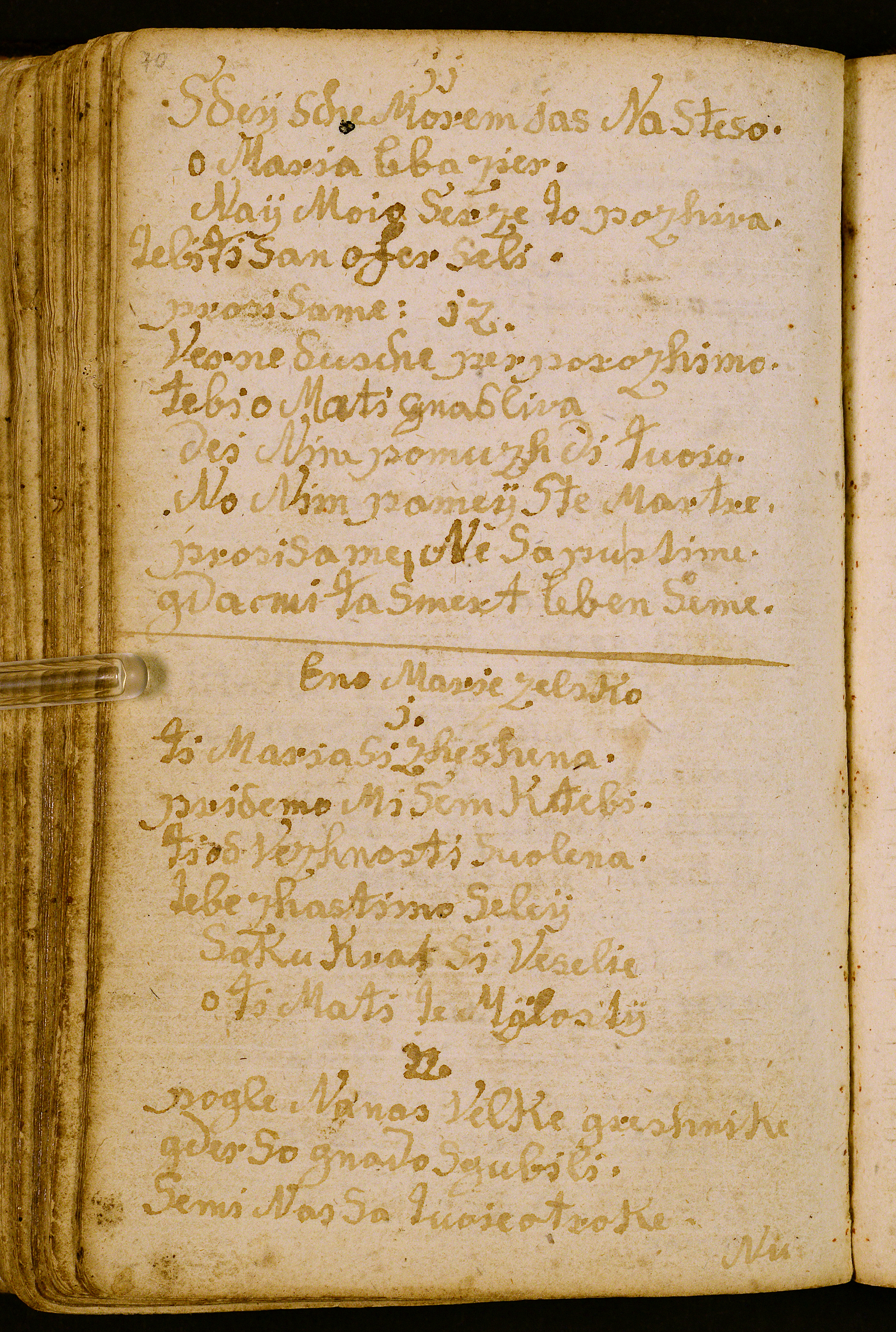 papir || Na ohranjenih 57 listov (eden je še prilepljen na zadnjo platnico) je pisalo več rok, prva oz. glavna je roka Lovrenca Foglarja || 146 || 90 || Prvotnega številčenja ni, s svinčnikom vpisana komaj vidna sekundarna paginacija. || 7(-1) + 8 + 8 + 8 + 8 + 8 + 5(-1) + 5 + i || Rokopis sestavlja osem leg. Prvih šest snopičev je vsebovalo po 8 folijev (kvaternij), zadnja dva po 6 (ternij). Zadnji folij zadnje lege (i) je prilepljen na zadnjo platnico knjige. Manjkata dva folija, po eden v prvi in v sedmi legi. || Napisalo osem rok. || Lovrenc Foglar, Matija Vezjak, Jožef Glazer in pet anonimnih piscev. || Prednji list rokopisa je oblikovan z velikimi, okrasno izpisanimi črkami z rdečim in črnim črnilom. Matija Vezjak (Bezjak) in Lovrenc Foglar sta svoje zapise končala z okrasnimi monogrami Jezusovega in Marijinega imena. || Zbornik je vezan v platnice iz lesenih deščic, prevlečene z rjavim usnjem; zapirača sta odpadla, eden je še priložen rokopisu v škatli.